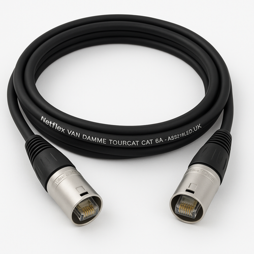 The Netflex Van Damme TourCat Cat 6A S/FTP EtherCon cable is a premium, professional-grade network cable designed for Dante, AVB, AES50, and stage network systems.